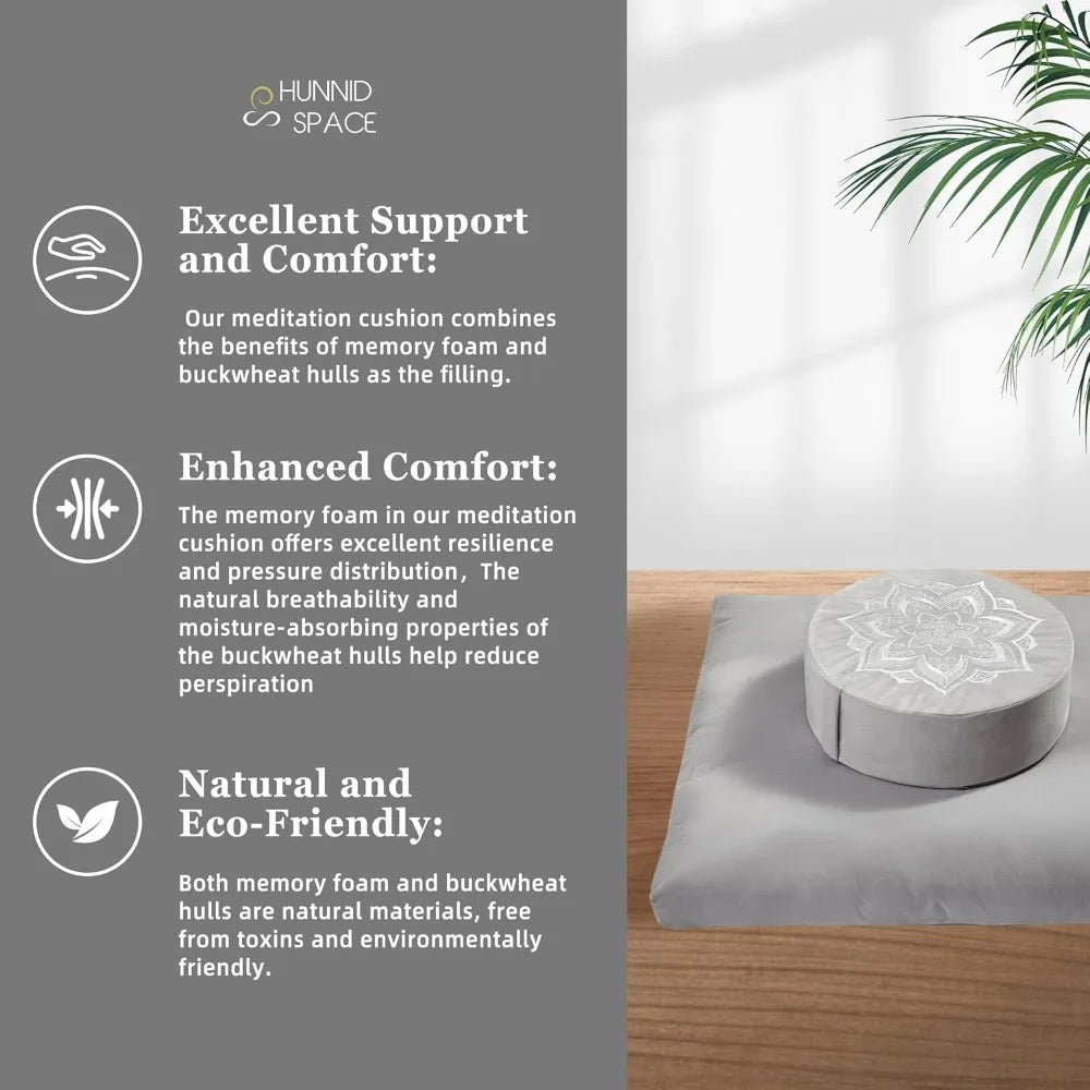 Hunnidspace MeditationPractice Zafu Cushioning Set With Buckwheat Hulls MemoryFoamCore